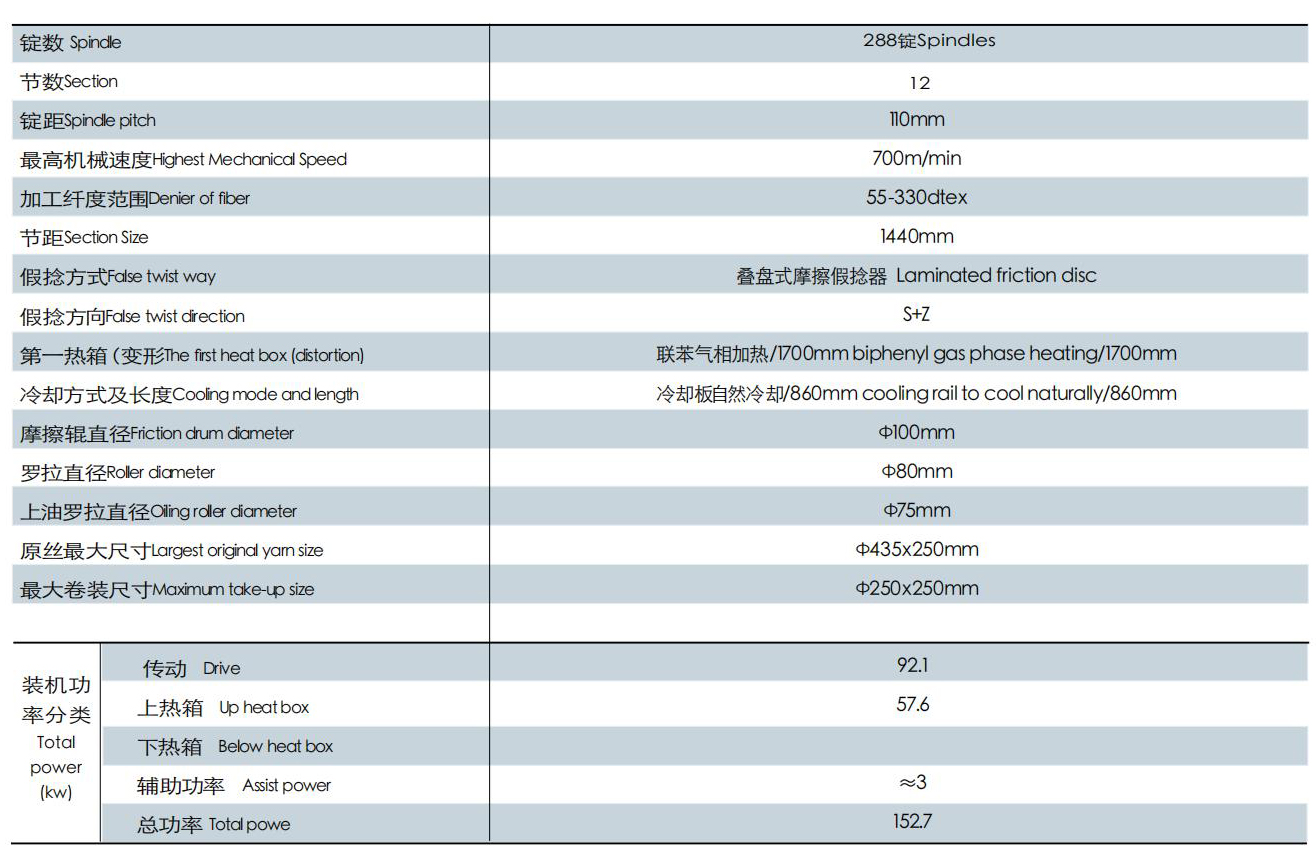 【設(shè)備用途Equipment use】 該機(jī)主要是將聚酰胺(錦綸)POY原絲,通過拉伸和假捻變形加工成具有高彈性能的假捻變形絲(錦綸DTY彈力絲)。