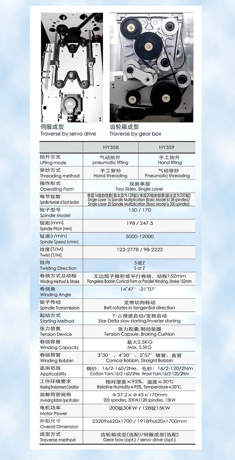 【主要特點】 HY310G高速超細化纖倍捻機是浙江省高新技術產品。它具有錠速高,加捻范圍廣、能耗低等優點,可加捻20旦尼爾的超細化纖絲,符合紡織行業發展的需求。